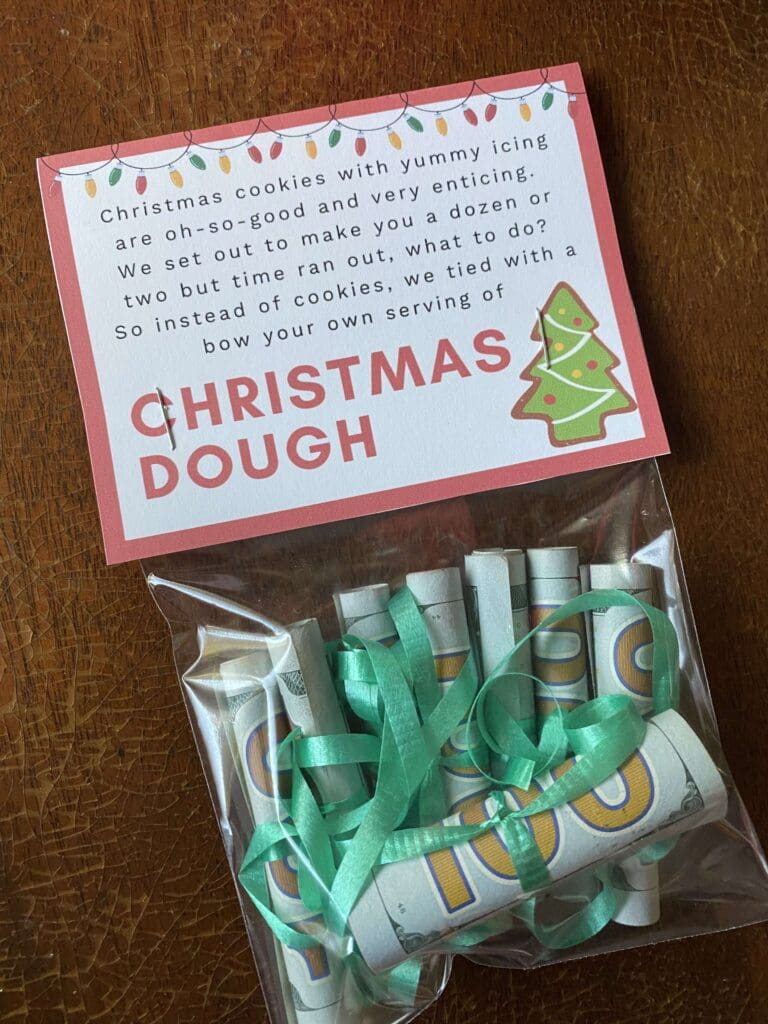 Who can resist a jar filled with delicious cookie ingredients? Take this idea to the next level by replacing the traditional ingredients with rolled-up bills of various denominations. Add festive baking supplies like a mixing bowl, cookie cutters, rolling pin, and oven mitt with this adorable “recipe” card. Use our template for the cookie dough teacher gift.